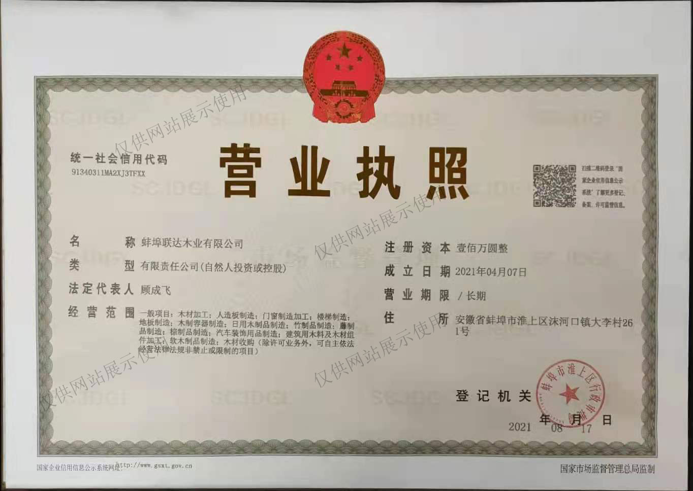 蚌埠联达木业有限公司以“诚实守信、用户至上、质量保障”的经营理念,不断提升企业的凝聚力和市场竞争力,创造诚信实力企业。